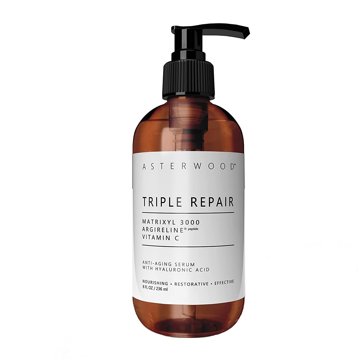 ASTERWOOD Triple Repair Matrixyl 3000 + Argireline + Hyaluronic Acid + Organic Vitamin C Serum for Face; Anti-Aging Face Serum, Anti-Wrinkle Serum, Facial Skin Serum Skin Care, 237ml/8 oz