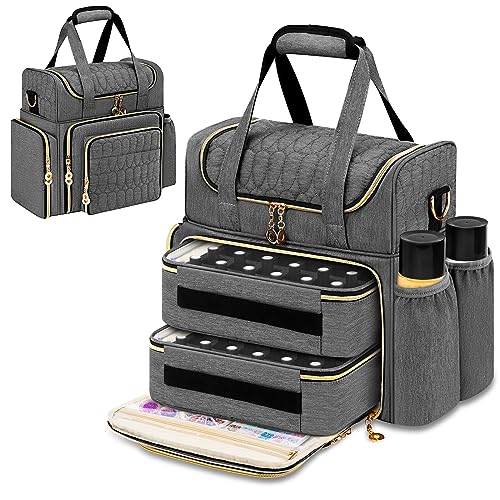 - 【Easy to Carry】The nail travel case comes with an adjustable shoulder strap and a sturdy carrying handle for nail enthusiasts with travelling needs. The nail polish bag is made of heavy-duty nylon, durable and wear-resistant. It is lightweight and perfect to carry when travelling. Whether you are going on holiday or visiting friends, you can easily take all your nail polish and manicure tools with you.
