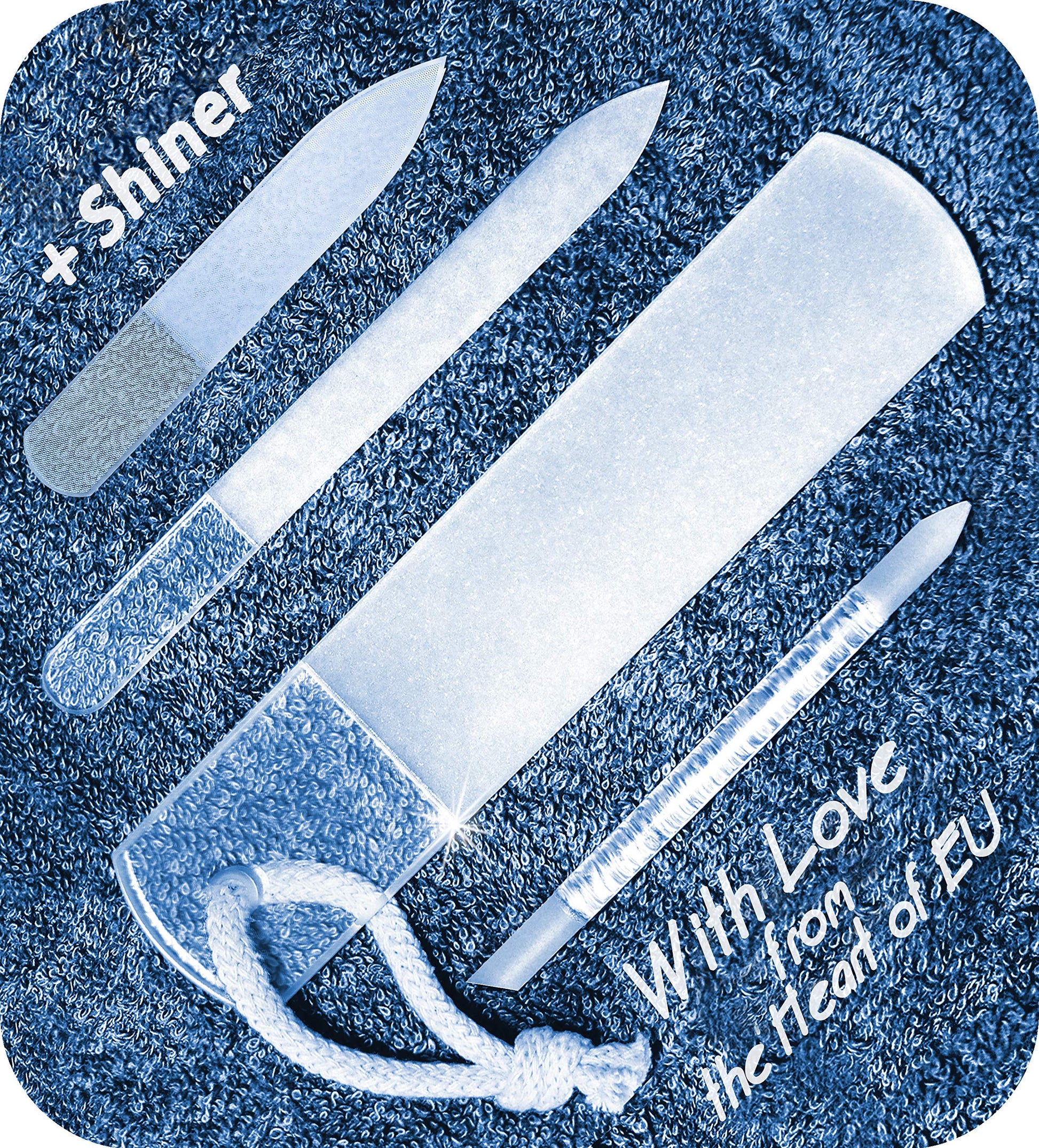 GLADZY Czech Glass Nail File Set - Multifunctional Nano Glass Nail Shiner Buffer, Callus Remover Foot Rasp, Glass Cuticle Pusher Manicure Stick, Etched Surface, Professional Nail Care Tool, Made in EU
