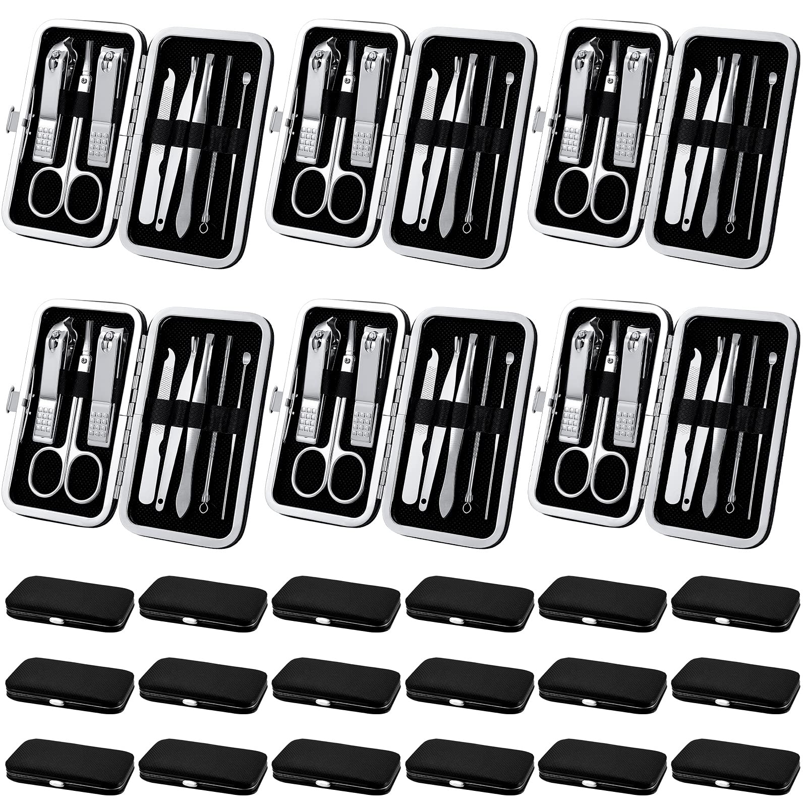Lasnten 24 Set Manicure Set Bulk Nail Clippers Grooming Nail Kit Stainless Steel Professional Pedicure Kit Pedicure Tools with Travel Case Gifts for Men Women Personal Nail (Black,8 in 1)