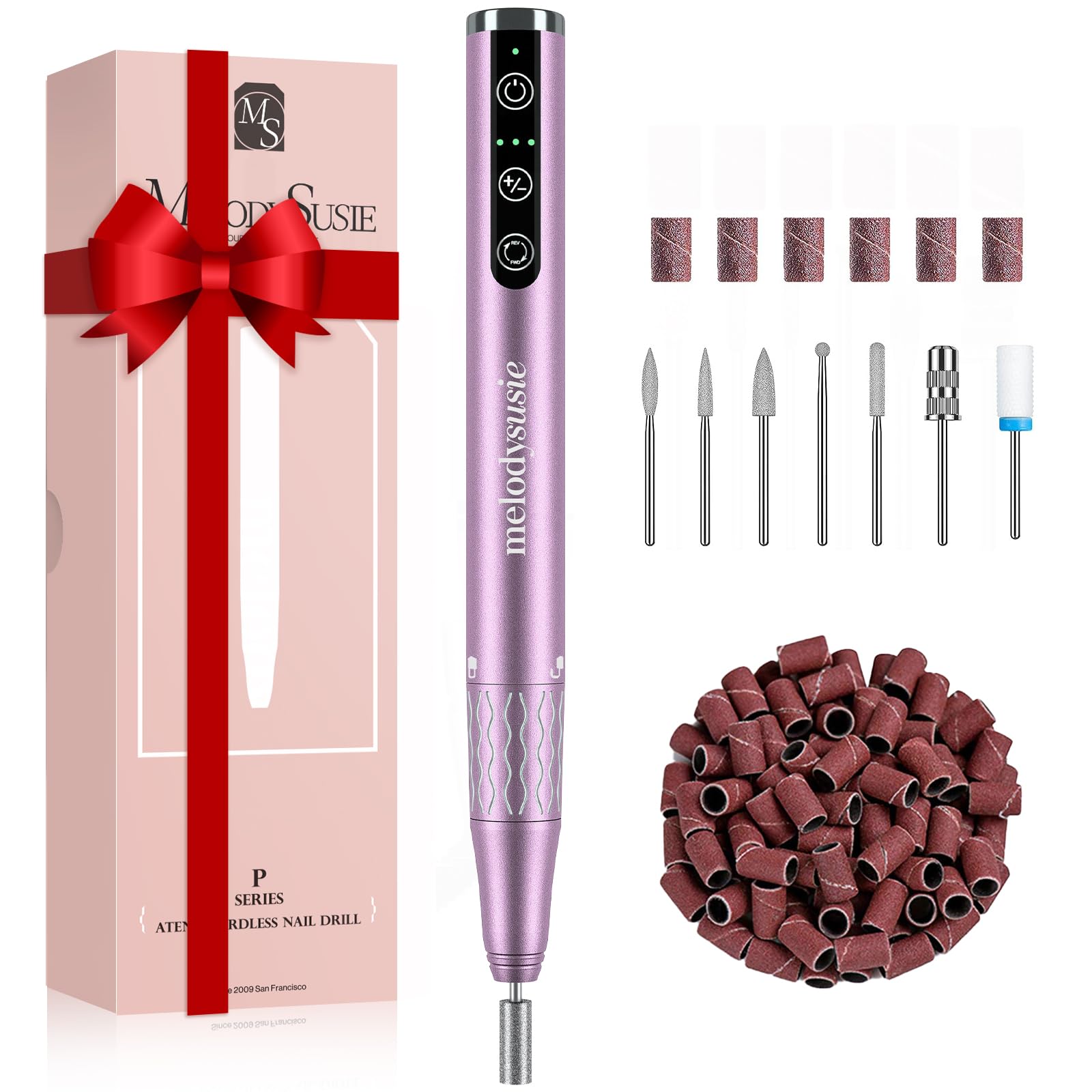 MelodySusie Professional Cordless Nail Drill, Portable Rechargeable Electric Efile Nail Machine File Kit with Bits and Sanding Bands for Acrylic Gel Nails, Manicure Pedicure Polishing, Purple