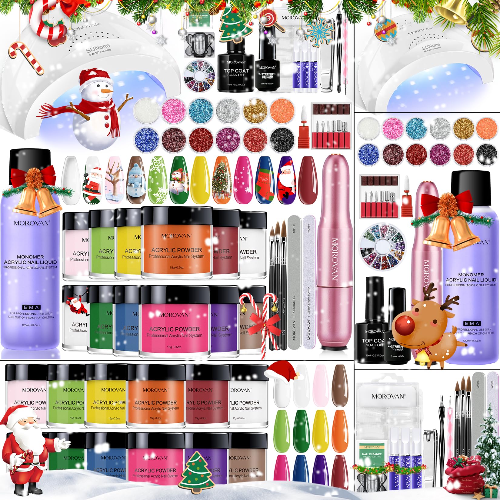 - 😘【ALL-IN-ONE MOROVAN ACRYLIC NAIL KIT】Nail kits professional acrylic with everything includes 12 colors acrylic powder, UV/LED nail lamp, nail drill, top coat, nail primer and more nail tools.