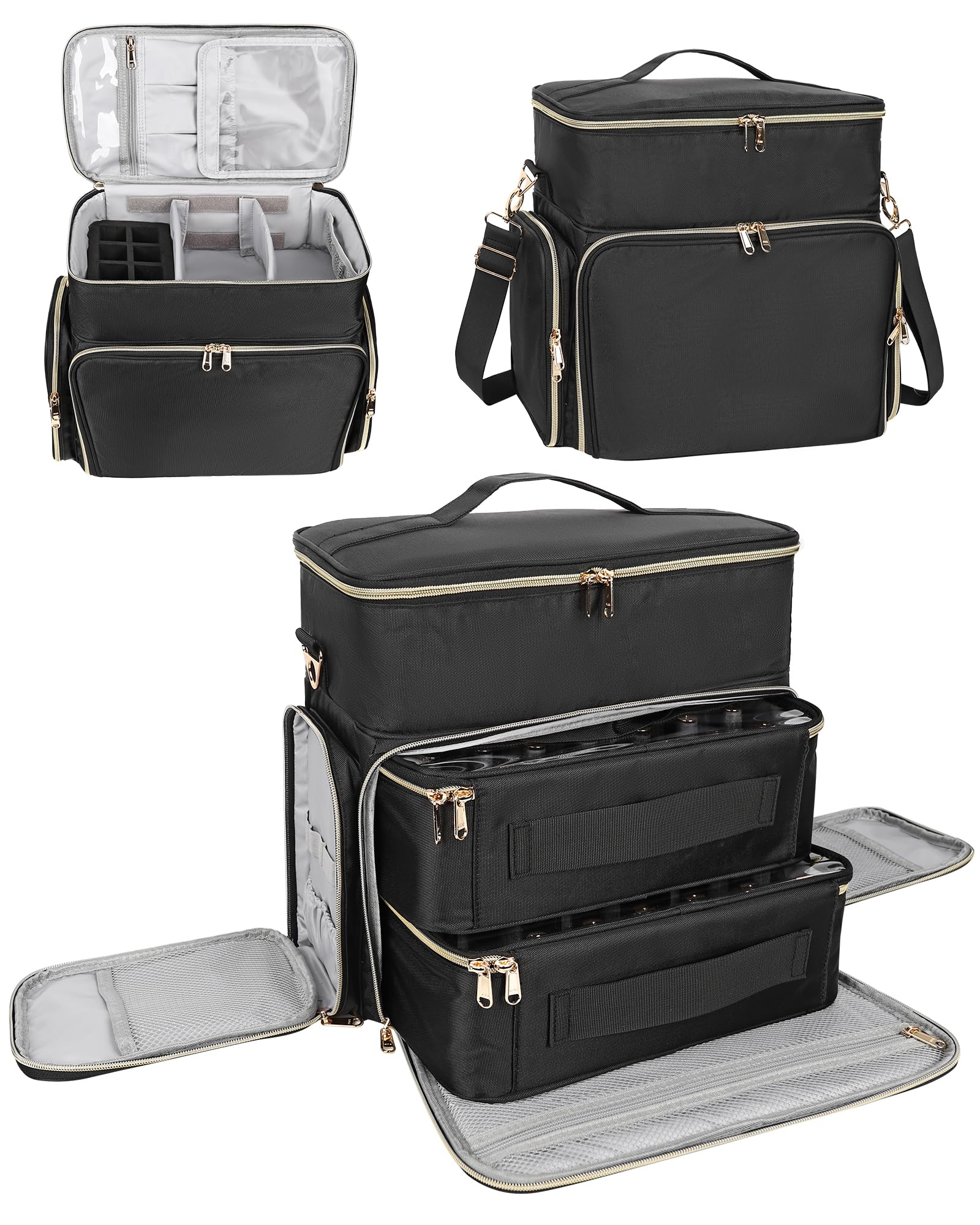 - Detachable Layer: A great nail organizers and storage for nail tech with 3 detachable layer. 2 nail polish organizer cases and the upper layer with adjustable dividers and can be used as a separate storage case.