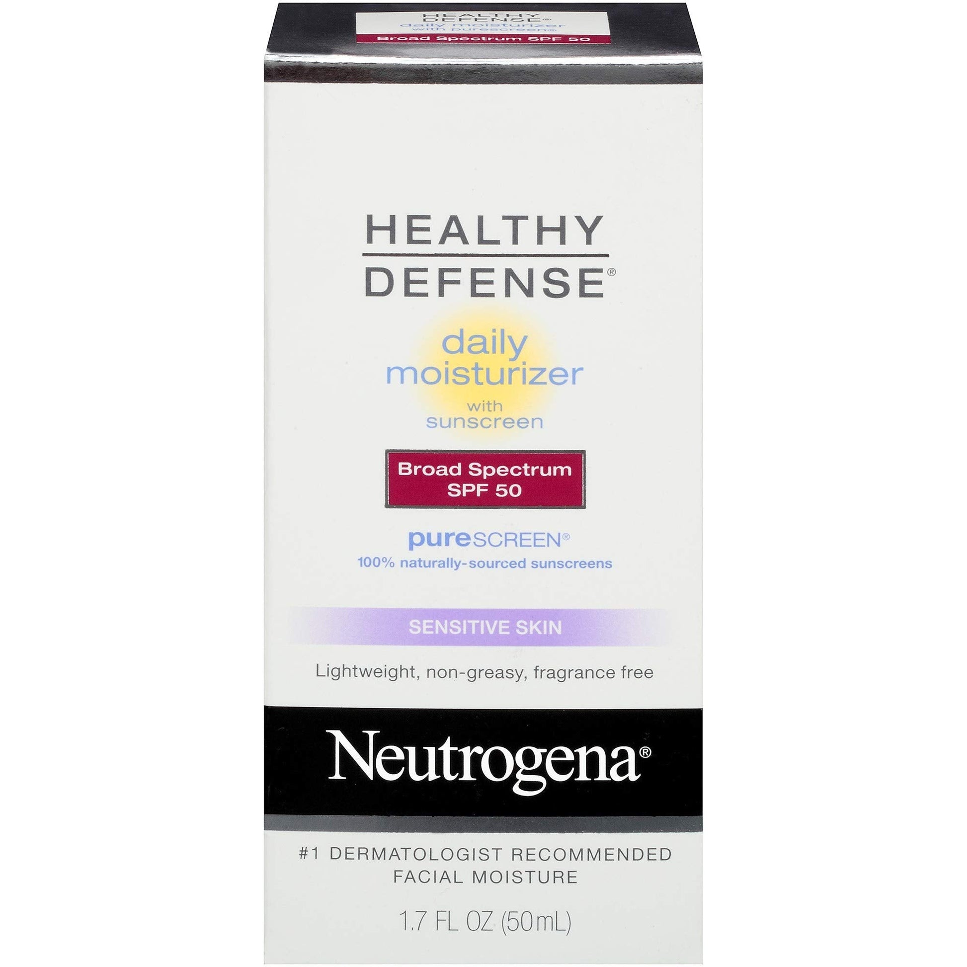 - 1.7-fluid ounces of Neutrogena Healthy Defense Daily Moisturizer with for Sensitive Skin with SPF 50 helps hydrate skin while also providing superior sun protection