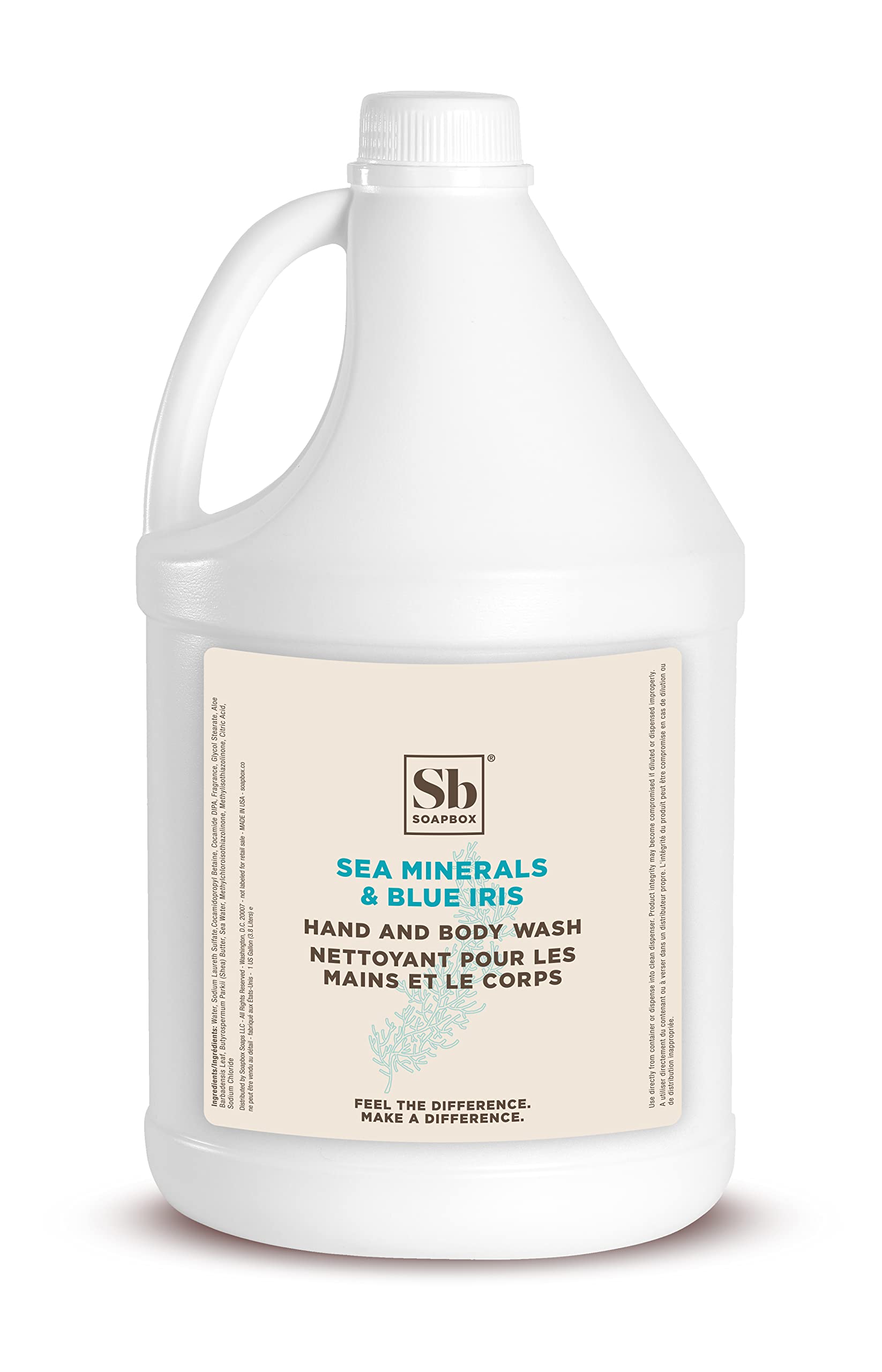 Soapbox Liquid Hand Soap & Body Wash, Sea Minerals & Blue Iris - Gentle, Moisturizing Hand & Body Cleanser, Vegan, Cruelty Free Hand Soap Refill for Bathroom, Kitchen, Professional Use - Gallon Size