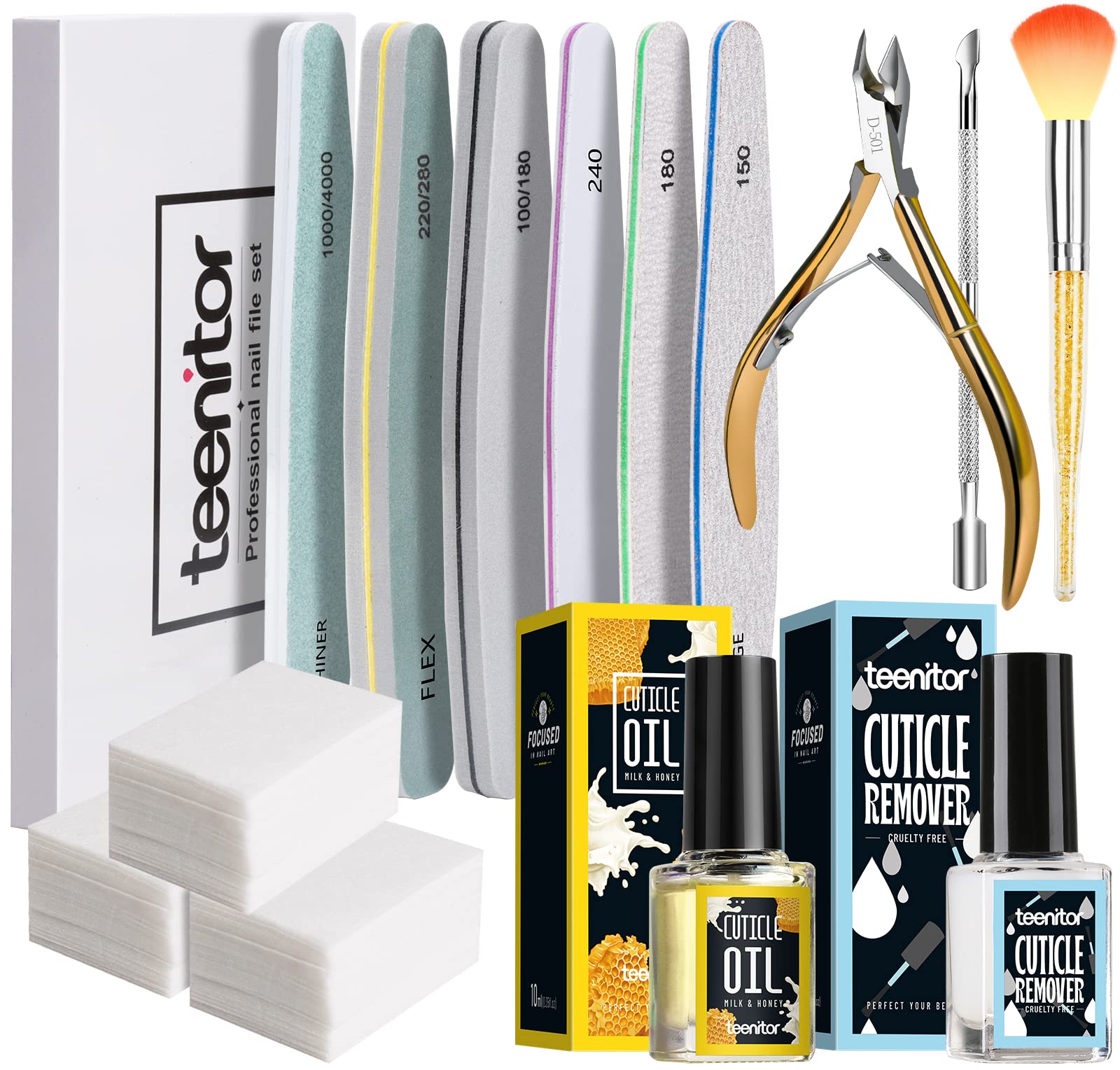 Teenitor Nail and Cuticle Care Tools kit with Cuticle Remover, Nail Files Buffer, Cuticle Nail Clipper, Cuticle Peeler Scraper Pusher and Cutter,Cuticle Oil and Clean Cotton Pad