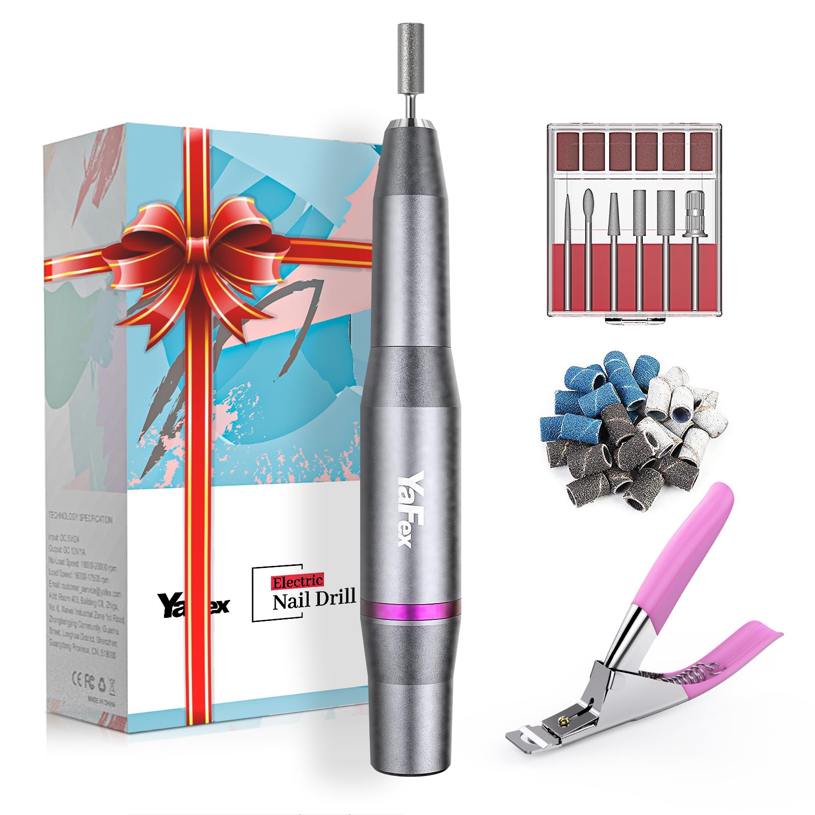 YaFex Electric Nail Drill Machine, Electric Nail File Kit Professional Manicure Pedicure Tool with Acrylic Nail Clipper, Portable E Filer for Acrylic Gel Nails, Shaping, Polishing, Filing